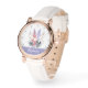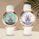カスタマイズ可能な7月の誕生花女性の腕時計でスタイルを高める!白いストラッ素晴らしプにヒラークスパーのデザインを取り付けお洒落、この時計は個人touchの名前を追加することができる。日常の衣服や特別な贈り物に最適で、エレガンスと機能性を兼ね備えている。