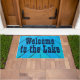 カスタム"湖への歓迎"の青く素朴な木製の一見 ドアマット