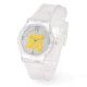 背景として紙カットのイラストレーションのルースターのカスタマイズ可能な黄色のアイデオグラム。のボタンを使って簡単にアイデオクリックグラムの色をカスタマイズ変える。デザインのシリコンストラッ澄んプウォッチの若いスタイル番号。鶏中国のの新年または誕生日(鶏の年の人生まれ々)に最適。