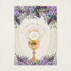 私たちの美し伝統的いカトリック初の聖なる聖体記念カードをパーソナライズ金ゴールドのチャリスと聖体とラベンダーの花。美しいカトリックのアニマクリスティ祈りの言葉は背面にある。すべての文字とフォントを変更できる。
