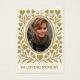愛する魂の生命を讃える美しく敬われるカトリックの葬儀記念カード。前面にはアンティーク金ゴールドハートとつる植物モチーフを取り囲んだ優雅なフォトフレームが配置され、その下に「In Loving Memory」という言葉が付いている。背中には、名前の宇宙、誕生と死の日、および魂の休息のためのカトリックの祈りの言葉が含ま伝統的れ、賛美ヴァージンマリアと聖徒の間の取り交わりを呼ぶ。ミッサルに足を踏み入れたり、家庭の祭壇に置いたり、レクイエムのミサで供えたりするのに最適。覚えたいと思う者と忠実な者が去った者のための祈大切な記念の品。簡単パーソナライズされた。