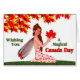 赤いメープルの葉を持つ可愛いカナダのピクシー。文字は、あなたが魔法のカナダの日を望んでいると言う。あいさカスタマイズつ、メッセージ、および署名エリア内。
