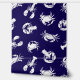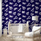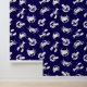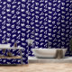 大きスタイリッシュい白い風化したカニとロブスターのネイビーブルブルー壁紙。ビーチバー、レストラン、ビーチハウス、キャビン、コテージに最適。沿岸クールの装飾背景の色をネイビーブルーから、あなたの宇宙に合ったものに変えることができる。