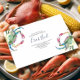 シーサイドに最適なニューカジュアルイングランドのビーチの集まり、イベント、夏のお祝い、7月4日の祭り、婚約パーティなど航海の、洗練されたビーチテーマパーティーの招待で海辺の冒険に着手しよう。今回の招待状では、手書きタイポグラフィでエレガントに描かれた「カニ沸騰」というフレーズスタイリッシュが、イベント詳細がクラシックの木炭グレーのセリフフォントで鮮明な白い背景に優雅に提示されている。正面には私の水独占的色のカニ絵画の、赤や青や緑の鮮やかディスプレイである。カードの裏側はエレガントに相補的なネイビーブルーで仕上げられ、その沿岸のシックな魅力に加わる。ZazzleのDoTellABelleで、エレガンスが海風に合う私たちの文房具スイートの結婚全幅を探索する。