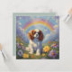 美しパーソナライズされたい虹の頭上の天の丘の上に絵を描のキャバリエ王チャールズの美しいカードを持つキャバリエ王チャールズ記念悔やみや弔慰カード。キャリバリー王チャールズ犬を象徴する犬は、犬に虹の橋を渡した天国。カードの裏面にある自分のキャバリエ・キング・チャールズの犬の名前やその他の文字でパーソナライズできる。彼らの犬が通過したキャリバリー王チャールズ犬の恋人のための特別な記念もしまたは親愛悔やみや弔慰の贈り物を作る。