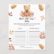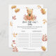 こ祝の秋でテディベアをテーマにした赤ちゃんシャワーパーティー!秋の紅葉に秋のカボチャが乗った水色の可愛いテディベア。カードの裏側には紅葉がある。一致する項目が使用可能。