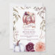 フローラとカボチャ秋誕生日パーティーへの招待紫、緑と桃。美しい水色のフローラ、葉とカボチャのデザイン。理想的な秋/秋デザイン。秋誕生日に最適。