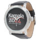 Kamala Harris for President 2024 Election, Make America Sane Againデザイングレーの背景には、白と赤の文字「Kamala 2024」が表示され、その下に「make America sane again」というスローガンが表示されている。カマ赤と白ラ語に波線が付いている。