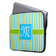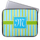 カラフルで青および緑のストライプなパターンモノグラム ラップトップスリーブ