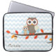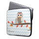 2羽のフクロウが付いているツリーブランチの淡いブルーおよび白いシェブロンパターンそしてグラフィックでされるかわいく多彩なフクロウのラップトップの箱。 あなた自身のためのまたはおもしろいのギフトのアイディアとして茶色の原稿の文字を個人化して下さい。