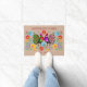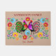 bohoのスタイルのオンドリおよび花のデザインを特色にするこのかわいいドア・マットとの多彩なファッションのあなたのゲストに挨拶して下さい。 2羽の誇りを持ったなオンドリは赤、金ゴールド、黄色、青および緑の明るい花のイメージと組み立てられる胸に胸を立てます。 イメージの上そして底で一致の赤のあなたのカスタムな文字はあります。 イメージおよび文字は軽い日焼けの背景にそれらを際立たせます実際に置かれます!