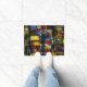 多数の色の抽象的なパターンが付いている世紀半ばのモダンな玄関マット。
