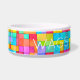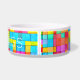 抽象芸術の水彩アートパターン黄色、オレンジ、ピンク、緑、青、白のPET NAMEカスタム付き。簡単をパーソナライズ文字、文字色。モダンおもしろいカラフルでペットにしゃれている!TMCdesignsによる抽象芸術・アート・コレクション全体のミックスとマッチング
