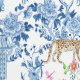 ヒョウよくはしゃぐ、中国のヤナギの木、様式化されたマゼンタとピンクのフローラと葉のデザインとパゴダを特徴とするカラフルChinoiserieデザイン。国際的に認可されたアーティストでデザイナーのオードリー・ジャンヌ・ロバーツ©によるアート。オードリー・ジャンヌのアートワークは、MHSライセンスを通じてライセンスを取得できる。