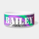 赤、ライムグリーン、青、紫、青、黒と白の大理石のデジタル流体アートのパーソナライズ領域に犬の名前を追加。
