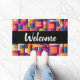 ウェルカムドアマットとカラフル抽象芸術背景。そしてはっきりしたエキサイティングな色 – ピンク、ブルー、オレンジなど。