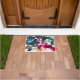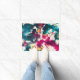 カラフル抽象芸術(ばちゃばちゃ)跳ねる絵を描ティール(緑がかった色)及びマゼンタ ドアマット