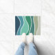 抽象芸術レトロスタイルカラフルのイラストレーション(青、ネイビーブルー、グレー、緑、ターコイズ)海波の白い背景の装飾