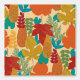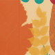 明るいベージュの背景に赤、オレンジ、黄、緑、ティール(緑がかった色)カラフルの水の色の紅葉。
