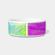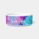 ネオンパカラフループル、ターコイズティール(緑がかった色)ブルー、ライムグリーンレインボー絞り染め、ドッグボウルに生地のような食感を直接印刷し、テンプレートやスクリプトフォントでネオンの名前を入れ、編集者を使って編集できもしる。
