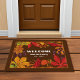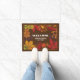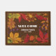 暖かい茶色の背景にカラフルと赤い果実を設定したカスタマイズ可能な秋形式で葉、家族、友人、ゲストを歓迎する。個人touchを追加するには、文字、確立日、および家族の名前を変更して、あなたの秋、感謝祭、ハロウィーンの装飾に居心地の良い、種類の一つの追加を作成する。温かく、魅力的な入り口を感じ追加するのに最適な、このドーユニークマットは季節の魅力と個人的なしゃれている魅力を融合。