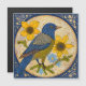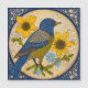 赤カラフル色の花と青いデイジーに囲まれた枝に止まっている鳥のイラストレーション。作品は青、黄点々のある色、色調の調和したパターンと自然、明るく生き生きとした構成を特徴としている。