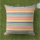 明るくフェスティバルを愛する人のための屋外の枕は、青ストライプ、ピンク、オレンジ、白、黄色、緑の水平なを特徴とする。