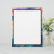 青緑、紫、緑、オレンジ色の美しい模様に金がアクセントされ、泡のようなデザインがこの便箋の背景を作り出しています。とても目を引くもので、芸術的またはカジュアルなビジネス、または個人使用にも適しています。