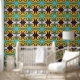 繊細モダンで浮いた外観のオウムの羽で作られたグラフィックデザイン。青、白、黄、茶色の美しい色 – レトロクールデザイン!