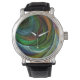 カラーグローリモダンー抽象芸術アートパターエレガントンヴィンテージレザーストラップとブラックレザーストラップウォッチ