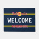 カリフォルニアライセンスプレートレトロスタイルカスタムDoormat。自分のバニティカーライセンスプレートの入場ラグを作る。車のカッコいいテーマデザイン。自分の名前またはプレート番号でパーソナライズ赤いスクリプトタイポグラフィテンプレートと黄色の夕日。カリフォルニア共和国。文字は間隔を置いたり狭めたりすることができる。家素晴らし屋、店舗、ビジネス、会社、オフィスなど
