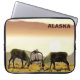 2つのトナカイの雄牛は、太陽が背景に沈む間、遠く北の秋の流れの間に格闘する。文字読の「アラスカ」も登場する。