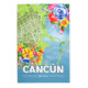 地図を含むメキシコのカンクンをフィーチャーした美しい金属アートプリントで、地元のスタイルの花と海を水色で彩る。