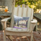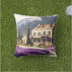 カントリーフランスのハウスラベンダーフラワーズマウンテンウォータークレア屋外パティオ装飾用クッションクッションはラベンダーの畑と山を持つカントリーの農家の水色のザラステックなエレガンスを備えスタイリッシュて絵画フランスの、素朴なエレガンスを備えている。家の装飾や誕生日、母の日やクリスマスの贈り物として最適。Evco Studioによる設計www.zazzle.com/store/evcostudio