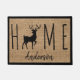 バーラップの背景と「HOME」という言葉とインスパイアあなたの家族の名前を備えた田舎風のデザインを持つゲストを歓迎すフェイク。「HOME」の「O」は大きなラック型バックのような形をしている。自分のクリック名前を追加するには「パーソナライズ」。カスタマイもしズのサポートが必要な場合は、zazzlevibes@gmail.comまでメールでお問い合わせください。www.zazzle.com/WhisperingPinesをご覧いただきありがとうございます。