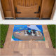 これはドアマットで愛らしいキャヴァリア·キング·チャールズの3人のオリジナル写真が犬の帆船に載っいけなています。