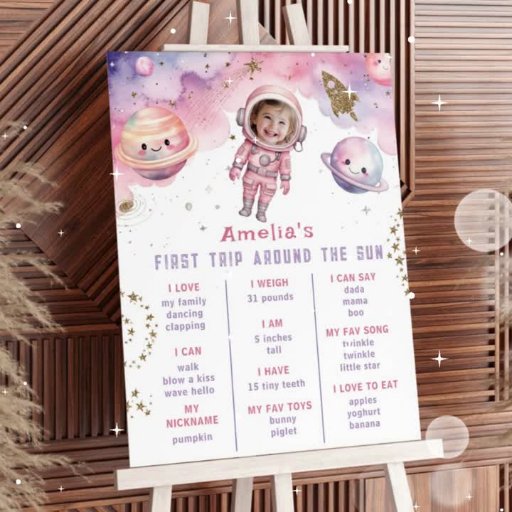 カードとギフト宇宙惑星の誕生日パーティー 台座サイン