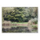 美しい緑の環境と水の下の孤独なベンチを持つカードをお許し。