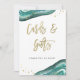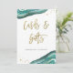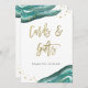 これエレガントはモダン、結婚カード&ギフトの看板は水色ティール(緑がかった色)の宝石石を備え、金ゴールドのタイポグラフィとスプラッシュフェイクを備えている。