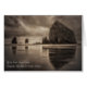 ヘイスタック・ロックと針は、オレゴン州のキャノンビーチで嵐の朝の間に湿った砂の中に反射した。