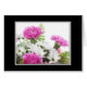 黒いボーダーによって囲まれるピンクのカーネーションおよび白いデイジーを特色にします。 ジャネットHastings 2010年著元の写真。