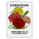 カスタマイズ可能なメッセージ領域のヴィンテージのカーネーションの種の包みのイラストレーションの挨拶状。
