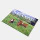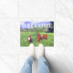 このドアマットは、愛らしい春の子牛のグループを持ち、トップで歓迎の言葉は、牛の恋人や農家のドアステップに最適な。