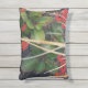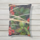 この屋外/屋内アクセント枕の画像は、庭にワックスのような緑のオリジナルを持つ赤いカランチョビの花の上に乾燥したヤシの葉の間を流れ落ちる短い風のZoeSPEAKの写真から作られてい離れる。
