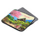 このラップトップスリーブは家と山日本のを背景に彼女の庭に座っている女性のイラストレーションを持っている。スリーブ上の名前は、受信者の名前でカスタマイズ可能。