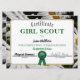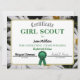 デイジーの美しい写真に収めら縁ど、この証明書は若い女の子のためのスカウトで"x"年の期間を完了するためのものである。カスタマイズ可能なテンプレート。領域を埋めて完了。背中には記念写真をアップロードするオプションもある!