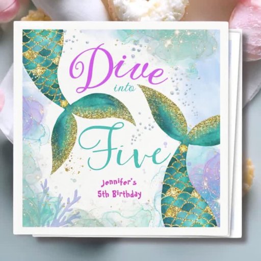Dive into Five! Purple Teal Mermaid 5h Birthday デザイン: H-Art Studio Design