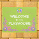 お子様の家のために花とガーリー蝶と私たちのPlayhouseのドー遊マへようこそ。女カスタマイズの子の名前を削除もしする。柔らかいパステル色のスキームは、ハート型の花びらと笑顔の蝶と花を持つ。ピンクのスクリプトの名前は、別のフォントや色に編集もしできる。