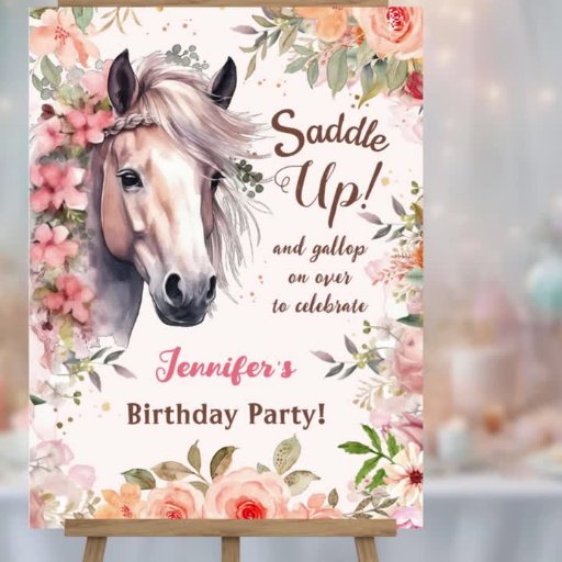 私たちの'女の子の馬の最初の誕生日フローラ野生のサドルアップ招待状!' 🎉🎂この愛らしい女性のカーボーイテーマとスタイルでお祝いをキックオフ!今すぐ取り付けポニーのパーティーを始めよう!🎉🎂