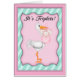 このピンクと緑のカードと3人の赤ん坊の女の子を保持するコウノトリとの喜びの小さな束を発表しなさい。